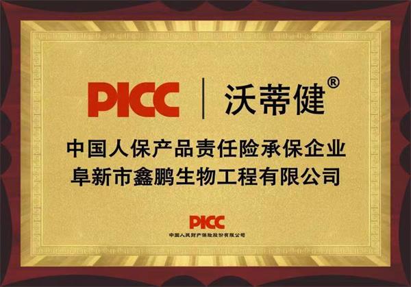 阜新市鑫鵬生物工程有限公司旗下沃蒂健、黑晶尖、芯霸、鑫鵬沃普爾、田寶畝、久畝神、九畝神、炭精神、稔如意、棚地神、松峰山、金禾財(cái)有根等系列產(chǎn)品,順利通過PICC中國人民保險(xiǎn)審核,為企業(yè)全線產(chǎn)品承保產(chǎn)品責(zé)任險(xiǎn),證明公司產(chǎn)品的真實(shí)、合格,也標(biāo)志著阜新市鑫鵬生物工程有限公司為消費(fèi)者提供安全保障的決心。